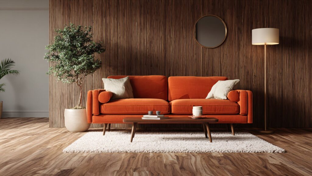 - Trämöbler kommer till sin rätt i varmt, gyllene ljus som framhäver materialets naturliga struktur.